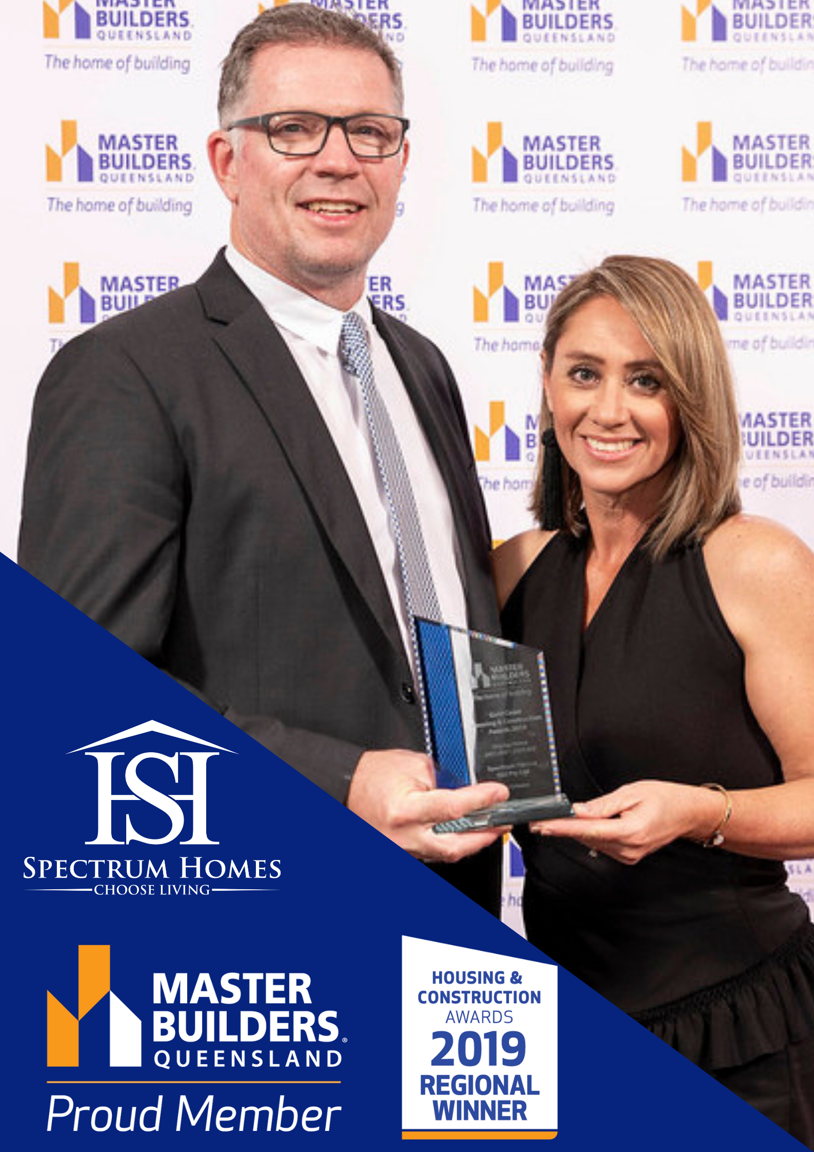 Spectrum Homes are proud to have taken out an Award at the 2019 Master Builders Awards for our Foreshore Coomera Display Home – The Orleans. This is the second year in a row we have won an Award for our display homes, with our Flagstone Display Home winning in 2018 – Thanks go to all our wonderful suppliers and trades who consistently produce a high standard of finish for all the homes we build